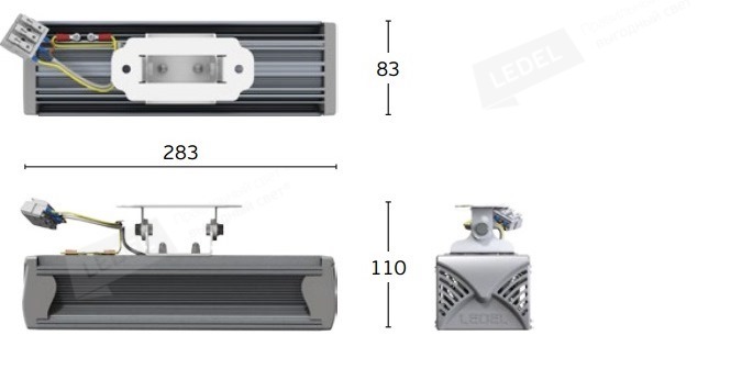 | Габаритные размеры светильника, мм | 110х280х83 |