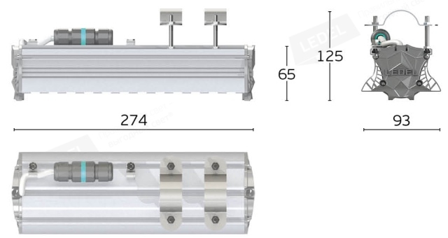 | Габаритные размеры светильника, мм | 274-774х93х140 |