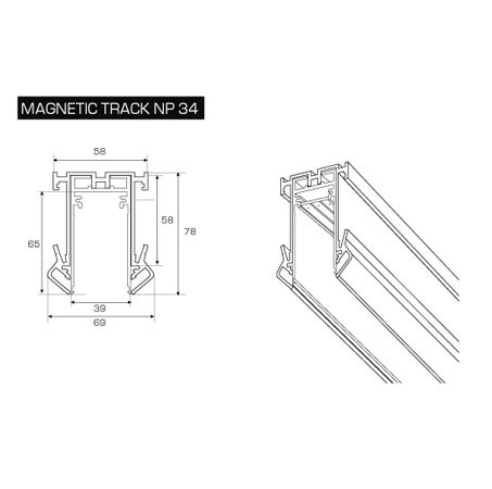 Магнитный шинопровод для натяжных потолков Magnetic.Track.NP34-300