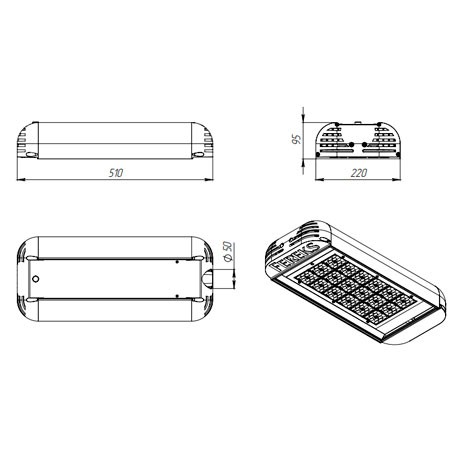 | Габаритные размеры светильника, мм | 220х95х510 |