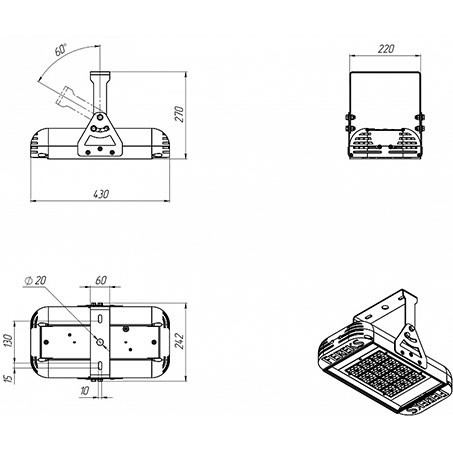| Габаритные размеры светильника, мм | 430x250x270 |