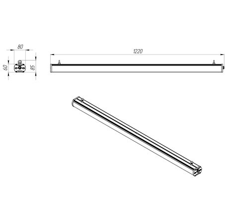 | Габаритные размеры светильника, мм | 80х1200х60 |