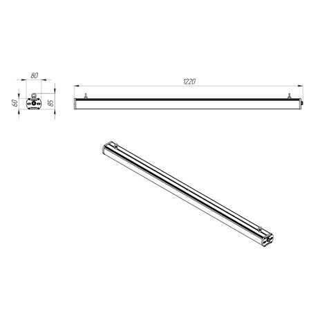 | Габаритные размеры светильника, мм | 80х1200х60 |
