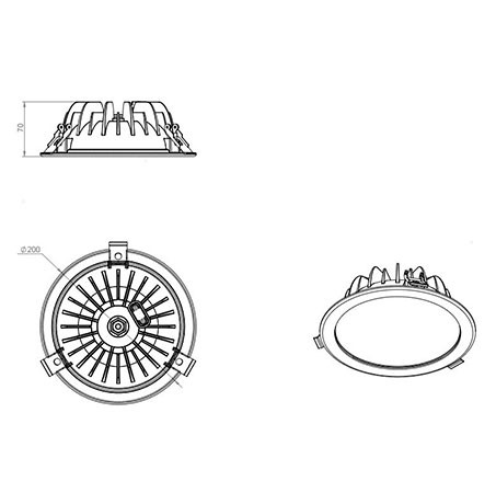 | Габаритные размеры светильника, мм | Ø200х70 (Øотв = 175) |