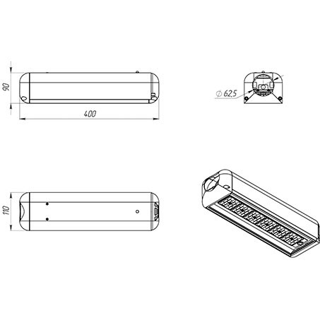 | Габаритные размеры светильника, мм | 400х110х90 |