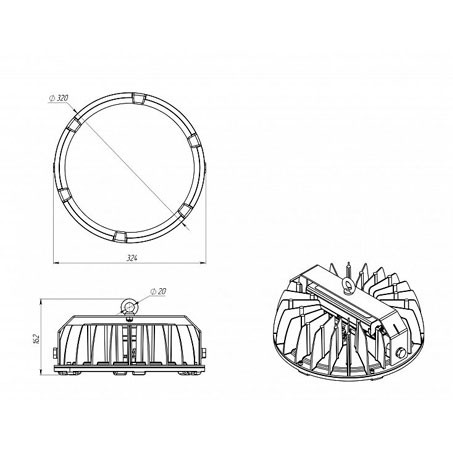| Габаритные размеры светильника, мм | Ø320x162 |
