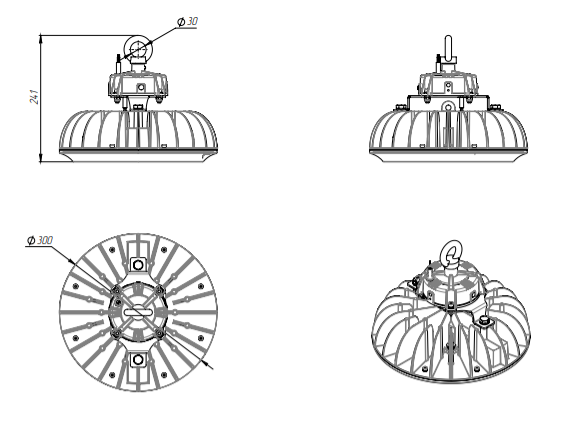 Предназначен для освещения производственных, складских, торговых, спортивных объектов. Светильник монтируется на крюк или на трос.
