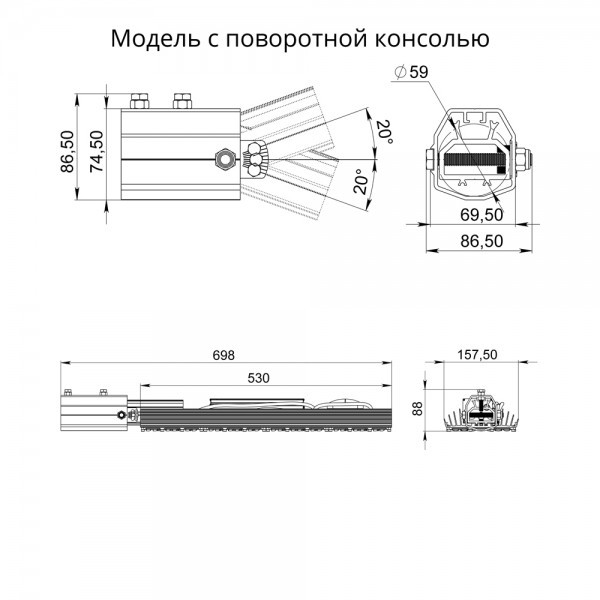 | Габаритные размеры светильника, мм | 570 х 158 х 103 |