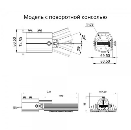 | Габаритные размеры светильника, мм | 245 х 158 х 103 |