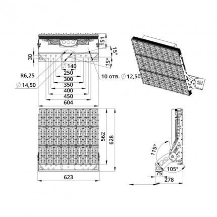| Габаритные размеры светильника, мм | 628×623×278 |