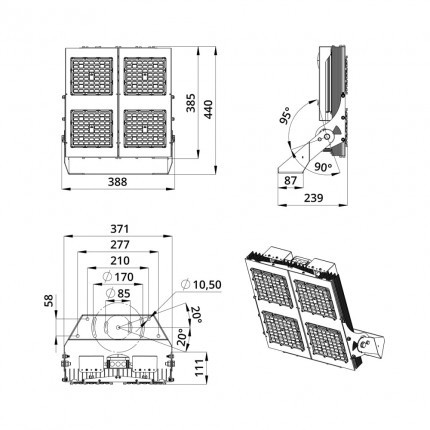 | Габаритные размеры светильника, мм | 440×388×239 |