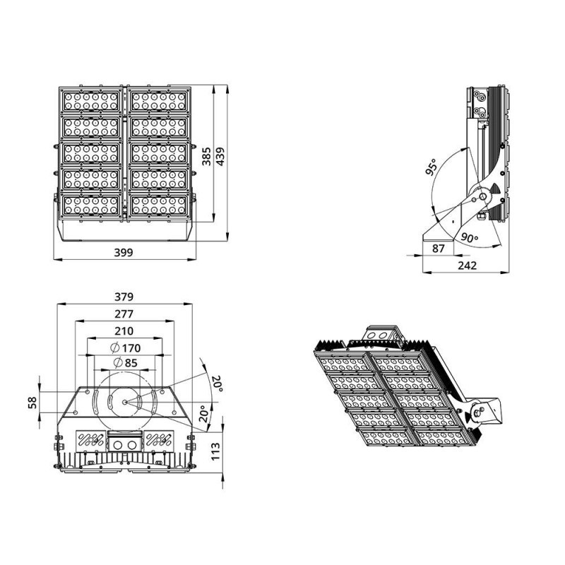 | Габаритные размеры светильника, мм | 439 x 399 x 242 |