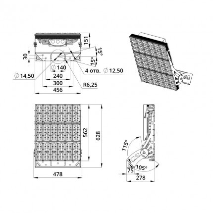 | Габаритные размеры светильника, мм | 628×478×278 |