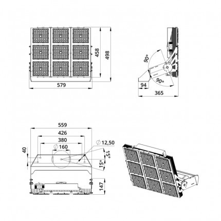 | Габаритные размеры светильника, мм | 579×498×365 |