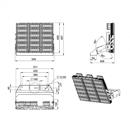 | Габаритные размеры светильника, мм | 595x497x368 |