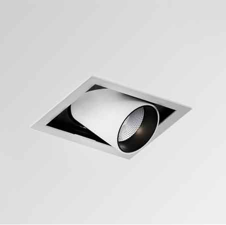 Встраиваемый светодиодный светильник с декоративной рамкой, вращающийся по оси 360°, выдвигается на полкорпуса - угол наклона 45°.