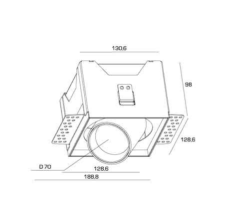 Встраиваемый светодиодный светильник без декоративной рамки, вращающийся по оси 360°, выдвигается на полкорпуса - угол наклона 45°.