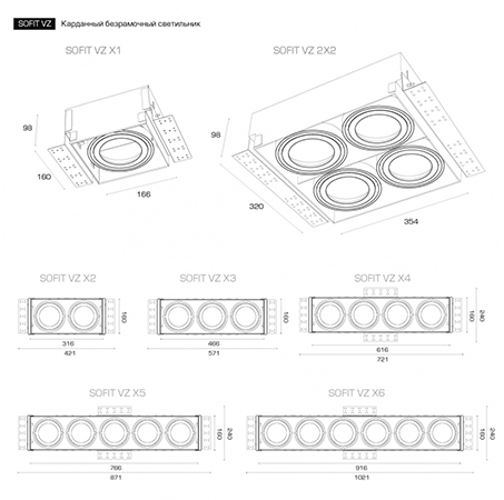 Карданный светодиодный светильник SOFIT VZ X1 без декоративной рамки для монтажа заподлицо с поверхностью. Под светодиодную лампу AR-111 (не входит в комплект поставки). Тросовые подвесы входят в комплект поставки.